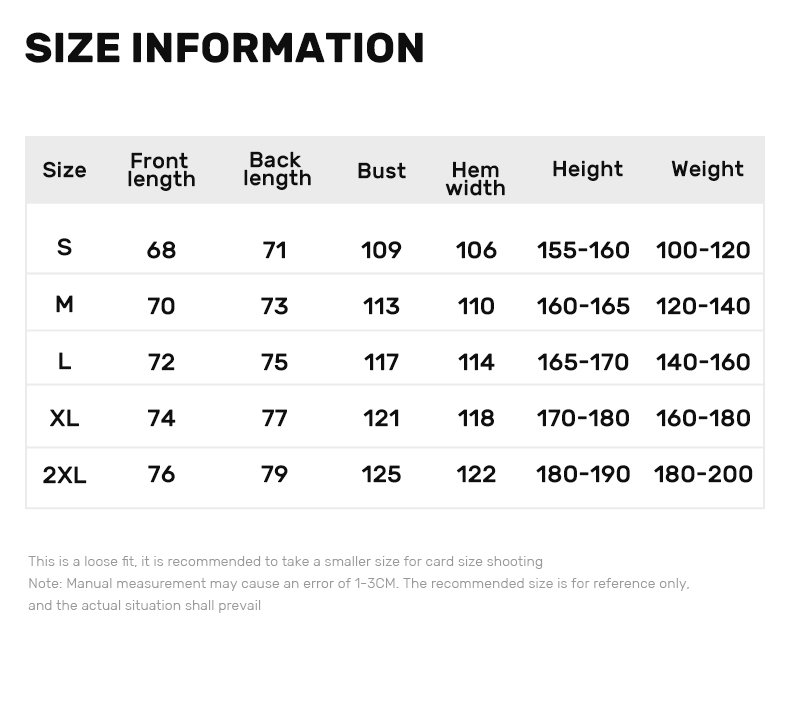 | Size | S, M, L, XL, XXL |