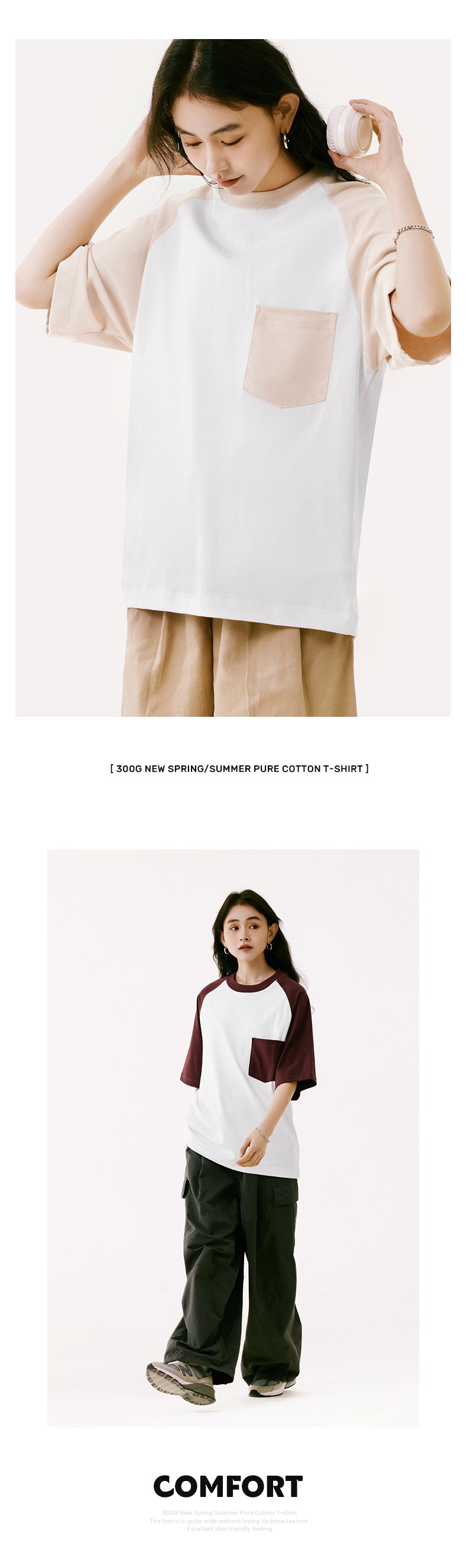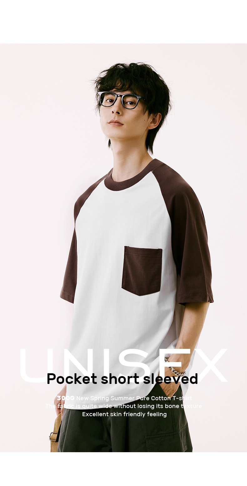 76Z-300G Long-Staple cotton (raglan contrast short-sleeved with pocket)
