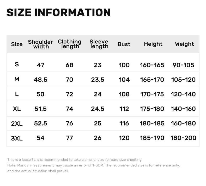 | Size | S, M, L, XL, XXL, 3XL |