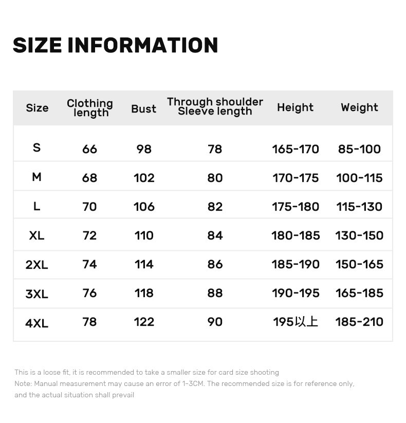 | Size | S, M, L, XL, XXL, 3XL, 4XL |