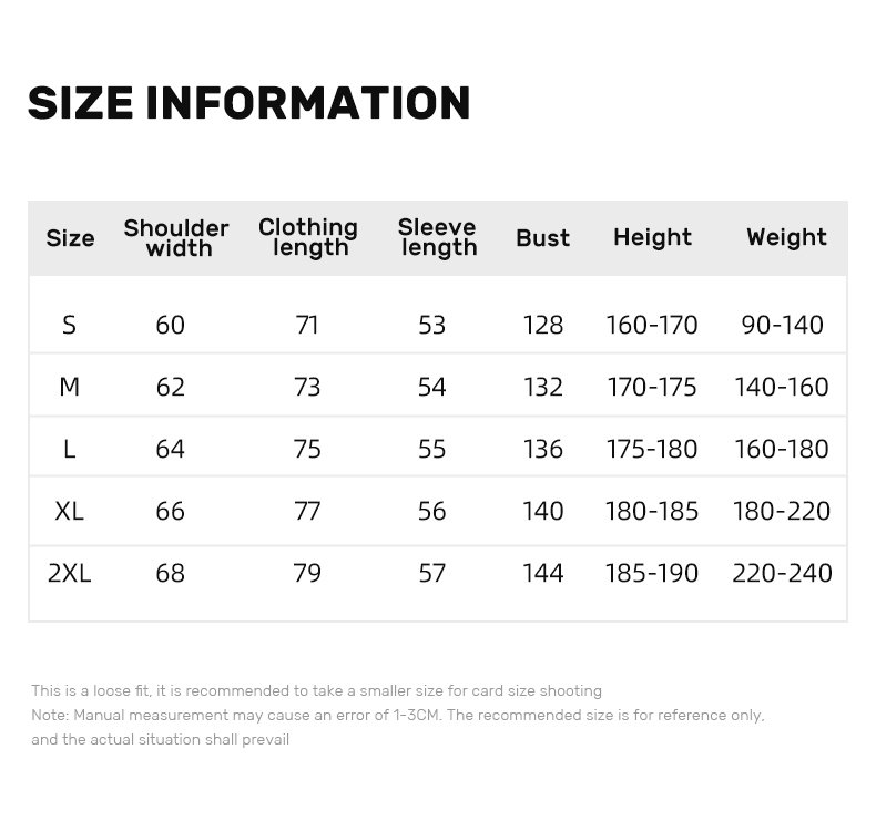 | Size | S, M, L, XL, XXL |