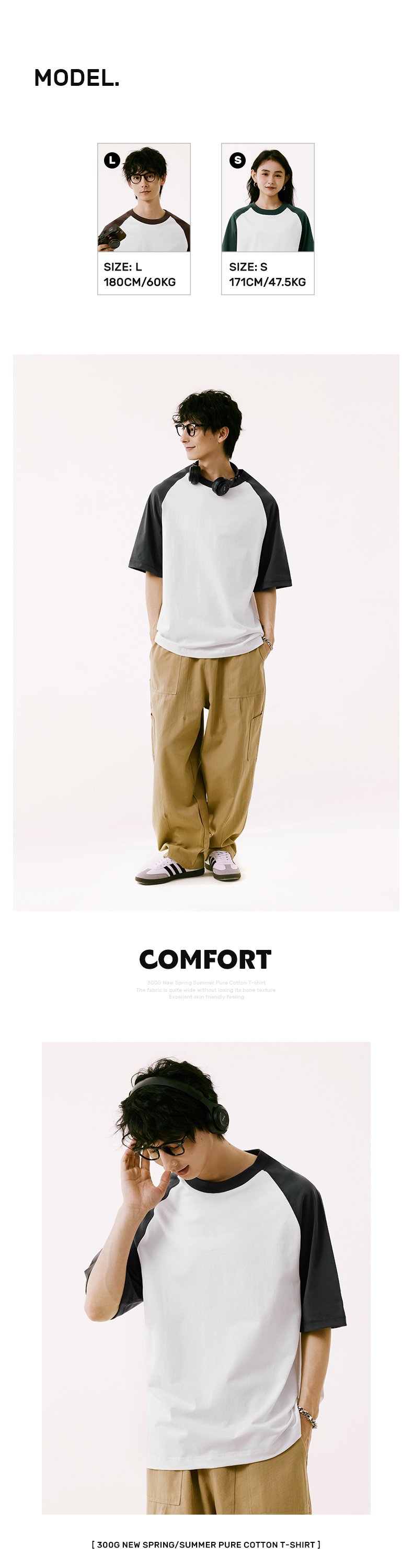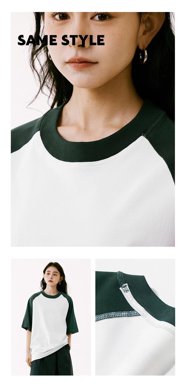 75Z-300G Long-Staple Cotton (raglan contrast short-sleeved plain version)